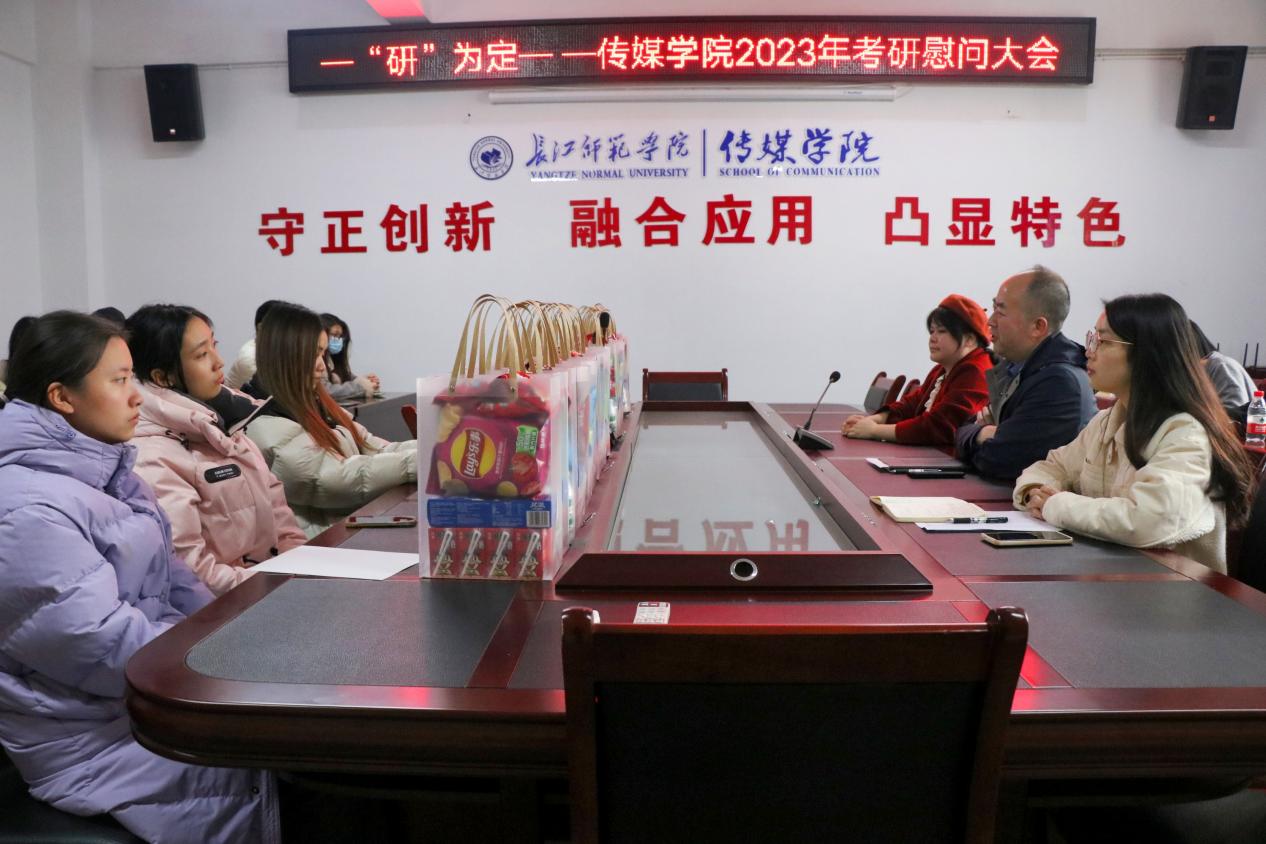 (通讯员:张彤 张芬)考研是你,上岸也是你。在2024年硕士研究生考试即将来临之际,为帮助我院考研学子缓解备考压力,鼓舞考研士气,坚定考研信心,12月14日15时,传媒学院于格致楼2313会议室开展了2023考研慰问活动。传媒学院党委副书记汪志平、团委书记及2022级辅导员王雯、2020级辅导员谭喻出席本次动员大会。
