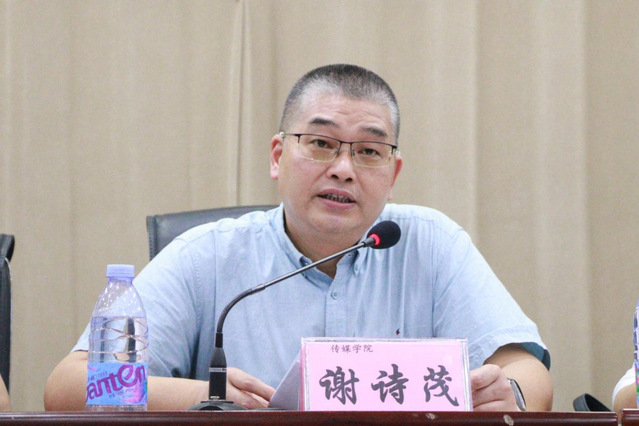典礼伊始,全体师生起立齐唱国歌,开学典礼就此拉开帷幕。传媒学院谢诗茂书记首先代表学院向新生致欢迎辞,并向同学们介绍了传媒学院的办学历史、特色的学科平台与雄厚的师资力量。
