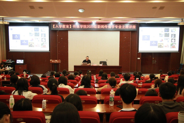 为帮助2025级新闻传播学专业新生深入了解专业方向与发展前景,9月14日上午,传媒学院在玉衡报告厅举办专业教育主题讲座。 讲座由广播电视学专业系主任贾森和网络与新媒体专业系主任张建雄共同主讲,两位老师分别就各自专业的特色优势、课程体系及就业前景进行了全面深入的介绍。