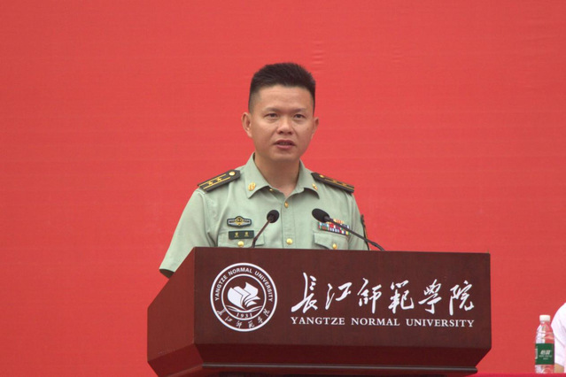 承训部队领导、武警重庆总队执勤第四支队副支队长曾勇中校讲话。他指出,军训是大学生接受国防教育、锤炼意志品质的重要必修课。他希望全体参训同学以军人的标准严格要求自己并将令行禁止、团结协作、吃苦耐劳的优良作风内化为今后学习和生活的强大动力,确保高标准、高质量完成本次军训任务。
