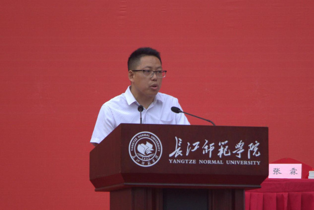 优秀教师代表张霖老师发言。他结合多年教书育人和科研探索的心得,分享了对大学之道的理解,勉励同学们珍惜韶华,在勤学中筑牢根基,在力行中练就真才实学,在修身中涵养高尚品格,努力成长为有理想、敢担当、能吃苦、肯奋斗的新时代好青年。
