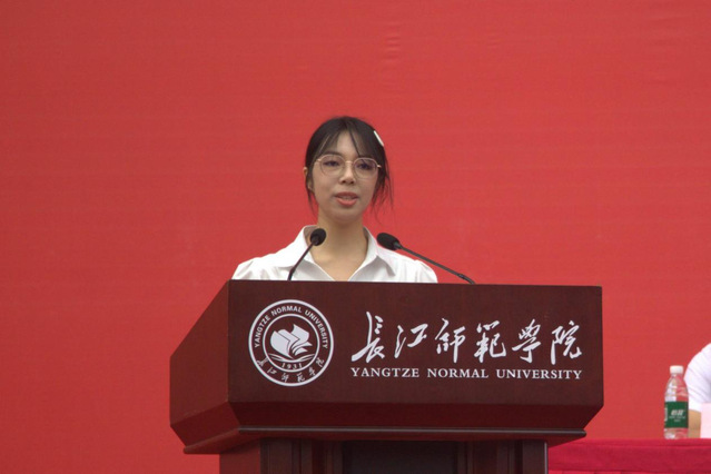 来自波兰的留学生代表范优然用流利的中文分享了她的感受。她深情表达了对中国和长江师范学院的热爱,表示选择长师不仅是为了精进专业知识,更是为了沉浸式体验博大精深的中华文化。她承诺将积极融入校园生活,与来自世界各地的同学互学互鉴、友好共处,努力成为促进中外文化交流的使者,在长师收获丰硕的知识与真挚的友谊。