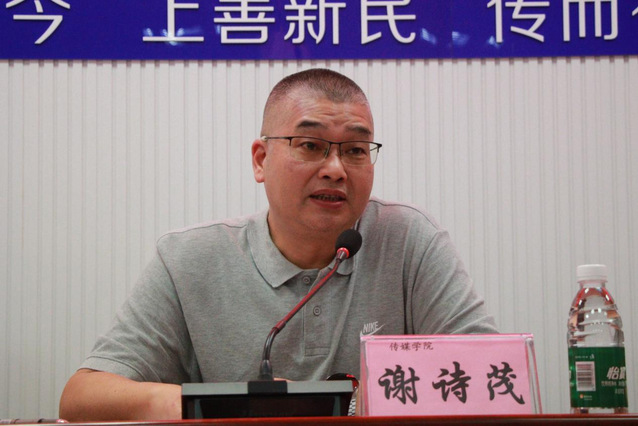 活动伊始传媒学院党委书记谢诗茂发表讲话。他首先向在场学生致以节日的诚挚祝福,并表示传媒学院积极落实国家资助政策始终关心同学们的成长,不断完善“奖、助、勤、补、贷”五位一体资助体系同时,他希望同学们将国家与学院的关怀转化为学习的动力,深耕传媒专业、锤炼过硬本领成长为有担当的传媒人,未来回报家庭与社会