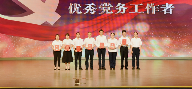 党委书记黄大勇为6个先进基层党组织代表颁奖,表彰基层党组织坚守为党育人、为国育才初心使命,引领广大党员干部爱岗敬业、钻研业务、勇挑重担、争创一流,让党旗高高飘扬在人才培养、科学研究、社会服务、文化传承的一线。